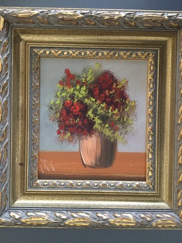 Ubekendt kunstner (20 årh): 2 blomstermalerier. Olie på plade. Sign.: begge utydeligt signeret. Ens rammer. Begge malerier måler 18x16 (30x28)