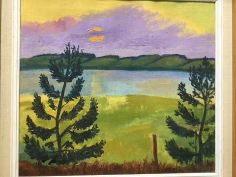 Carl Andersen (20 årh): Aften ved Limfjorden. Olie på lærred. Sign.: Carl Andersen 46x51 (56x61)