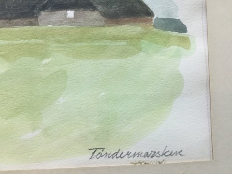 Jørgen Jørgensen (20 årh): Parti fra Tøndermarsken 1986. Akvarel på papir. Sign.: J. Jørgensen 1986 Betegnet - Tøndermarsken. 37x47 (51x71)