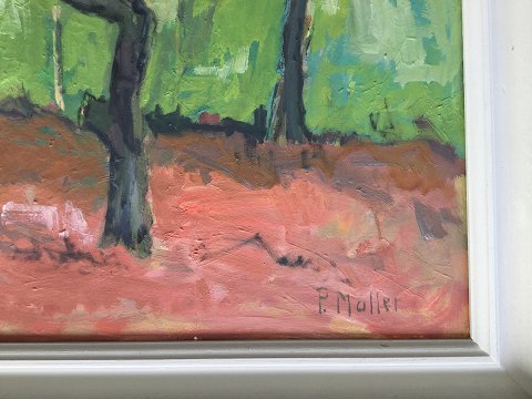 Poul Møller (1919-99): Efterårsskov. Olie på plade. Sign.: P. Møller 42x47 (51x57)