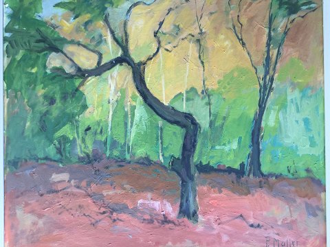 Poul Møller (1919-99): Efterårsskov. Olie på plade. Sign.: P. Møller 42x47 (51x57)