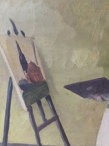 Jf. Malersammenslutningen af 1927's katalog i 1941 har maleriet nr. 427 på udstillingen med titlen "Maleren arbejder" (se fotos)
