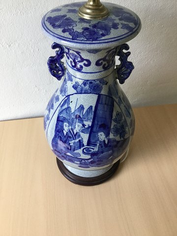 Dekoreret i blåt med scenerier i kartouche samt blade og floral.