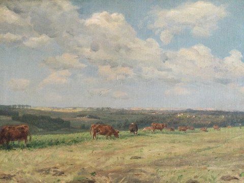 Bagpå blindramme: "Landskabet Hørsholm Mark 1905 og Mark og Køer gennemarbejdet 1908 Godf. Chr."