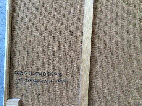 Jørgen Jørgensen (20 årh): Høstlandskab 1995. Akryl på plade. Sign.: J. Jørgensen. Betegnet bagpå - Høstlandskab - J. Jørgensen 1995. 61x78 (63x80)