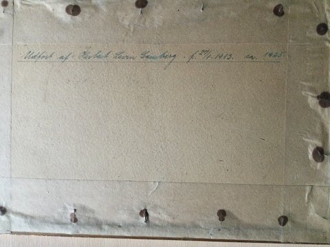 Herbert Levin Gamberg (født 1913): Gårdparti 1920'erne. Akvarel/pen på papir. Bagpå - Herbert Levin Gamberg født 1913. Indrammet - 18x27