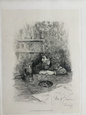 Mariano Fortuny y Marsal (1838-74): Portræt af kunstmaleren Eduardo Zamacois y Zabala (1841-71). Radering på papir. Sign.: Fortuny (i trykket) 18x13 (26x23)