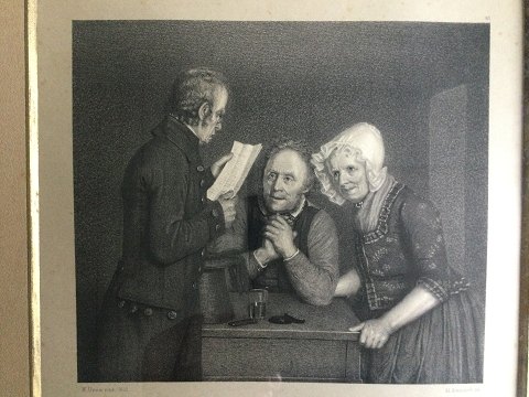 "En Skolemester foreklæser er par Gamle Folk, et Brev fra deres Søn i Udlandet"