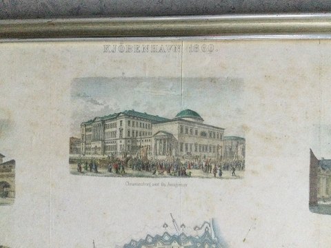Emilius Bærentzen (1799-1868): Kort over Kjøbenhavn 1860 Koloreret litografi på papir. Emilius Bærentzen & Co. lithografiske Inst. Fugtpletter og enkelte små revner Indrammet 46x53