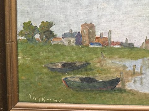 Axel Tankmar (1880-1960): Kystparti med fabrik. Olie på lærred. Sign.: Tankmar 22x27 (32x36)