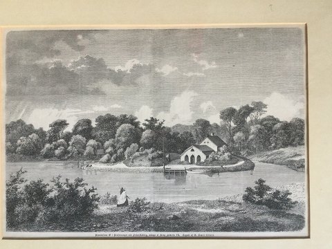 Ubekendt kunstner (19 årh): "Phantasiens Ø i Præstevænget ved Frederiksborg 1863 - anlagt af Kong Frederik VII" Efter tegning af Georg Emil Libert (1820-1908) Xylografi på papir. 25x35 (39x48)