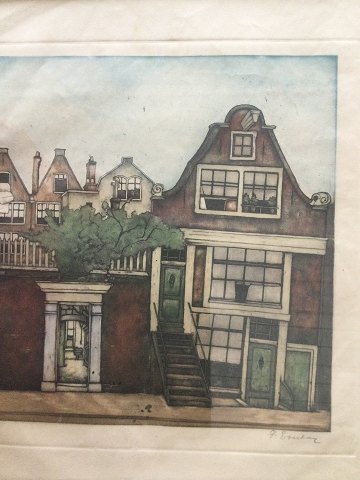 Frans Everbag (1877-1947): Parti fra Amsterdam. Farveradering på papir. Sign.: F. Everbag Nr. 14. Løs i rammen Indrammet 33x32