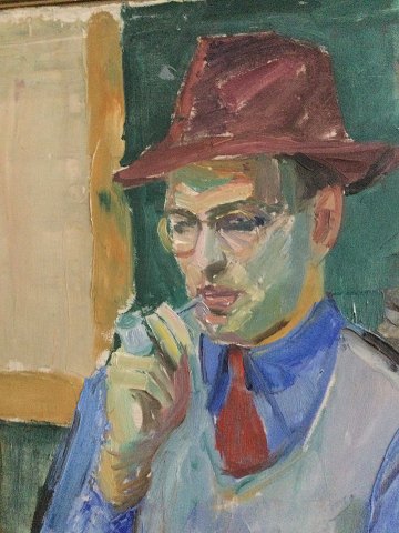 Gerner Kajberg (1919-2002): Selvportræt. Olie på lærred. Sign.: Kajberg 80x68 (92x80) Kajberg var uddannet fra Kunstakademiet i København 1946-49 ved Kræsten Iversen og Elof Risebye.