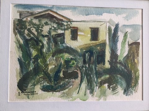 Parmo Baslund (født 1928): Parti fra San Bartolomeo, Italien 1976. Akvarel på papir. Sign.: Parmo Baslund 76. Betegnet - S. Bartolomeo 36x51 (49x63)