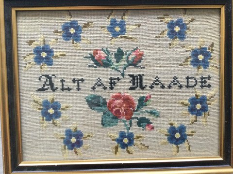 Indrammet broderi. "ALT AF NAADE" Indrammet i pæn ramme 22x28