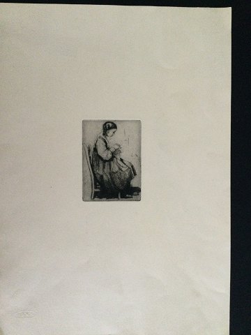 Ingeborg Andréasen-Lindborg (1875-1950): Lille pige der syr 1911. Radering på papir. Usigneret. DDRF Bladet måler 45x32 (trykfladen 11x8) Uden ramme.