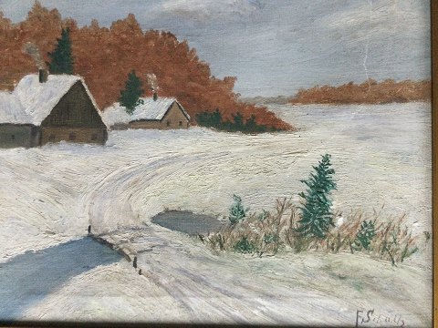 F. Schultz (19 årh): Vinterparti med gårde. Olie på lærred. Sign.: F. Schultz Nyere ramme. 25x29 (32x36)
