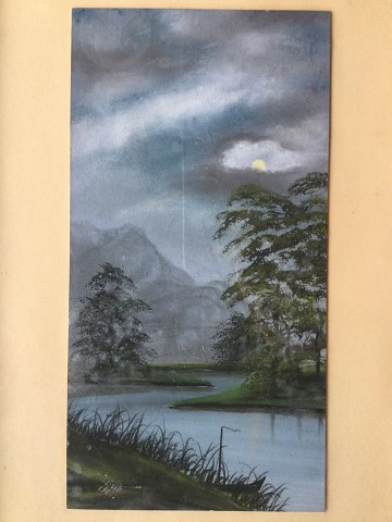 I. Bork (20 årh): Aftenstemning ved sø 1905. Pastel på papir. Sign.: I. Bork 1905 27x14 (39x26)