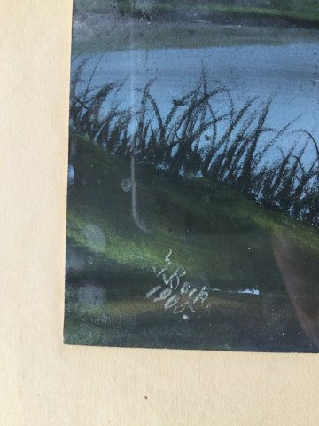 I. Bork (20 årh): Aftenstemning ved sø 1905. Pastel på papir. Sign.: I. Bork 1905 27x14 (39x26)