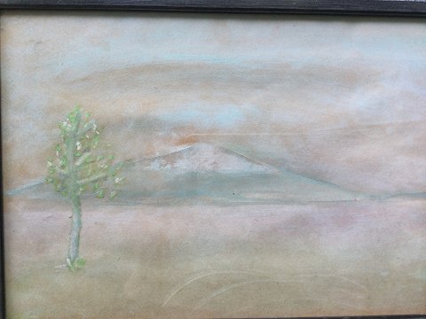 Ubekendt kunstner (20 årh): Landskab med sneklædt bjerg. Pastel på papir. Sign.: Usigneret Indrammet 22x31