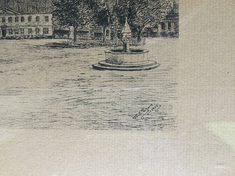 N.C. Thorn (20 årh): Parti fra Torvet 1925 Radring på papir. Sign.: N.C. Thorn 1925 ( i trykket). Indrammet 27x29