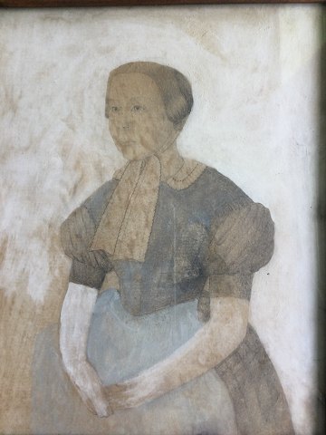 Ubekendt kunster (18/19 årh): Portræt af kvinde. Akvarel/pen på papir. Usigneret. Flere pletter. Indrammet 30x25