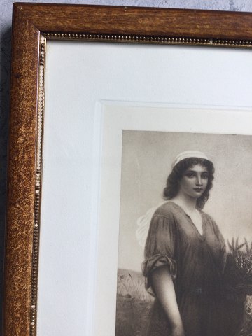 Ubekendt kunstner (19/20 årh): Ruth der sanker aks. Fotogravure på papir. Betegnet - RUTH. 25x16 (39x29) Defekt perlestaf på ramme.