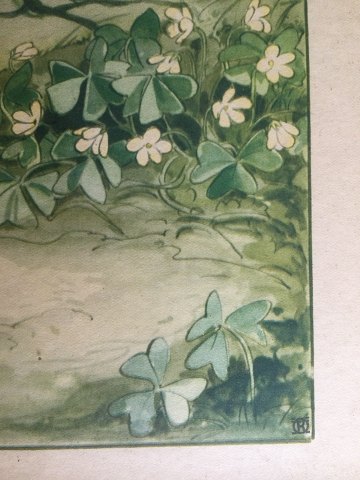 Ubekendt kunstner (20 årh): Dansende pige i skoven. Offset tryk på papir. Sign.: Monogram ÜR (i trykket) Indrammet - 27x23