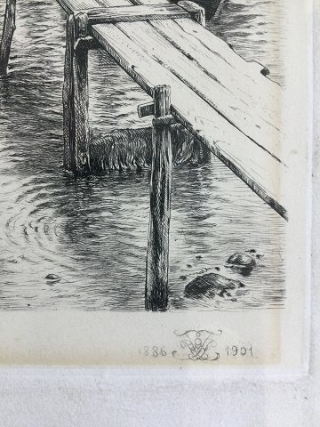 Peter Tom-Petersen (1861-1926): Badebroen, Troense 1901 Radering på papir. Sign.: Monogram 1886-1901 30x24 (33x27)