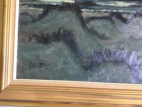 John Rubani (født 1935): Klitter med havet i baggrunden. Olie på lærred. Sign.: John Pedersen 40x60 (58x78)