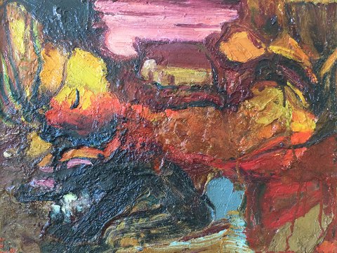 Erik Hansen (1914-70): Landskab. Olie på plade monteret på lærred. Sign.: E. Bagpå blindramme "Erik" 45x58 (49x62)