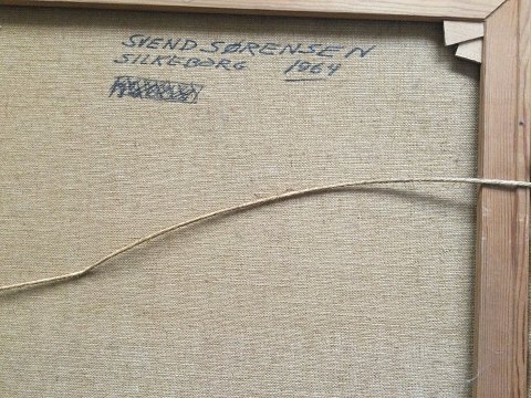 Svend Sørensen (født 1948): Landskab med stakit 1964. Olie på lærred. Sign.: Svend Sørensen - 64. Bagpå - Svend Sørensen 1964 Silkeborg. 60x80 (68x90)