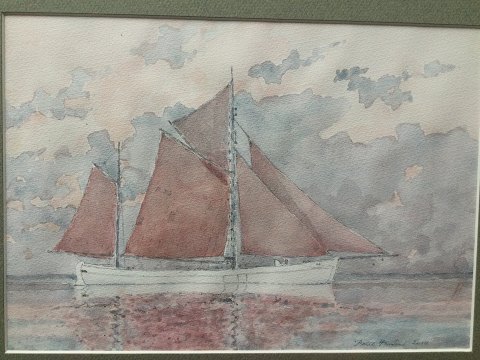 Poul Hansen (20/21 årh): Sejlskib på vandet 2014. Akvarel på papir. Sign.: Poul Hansen 2014 20x28 (29x37)