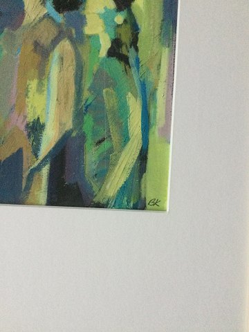 Birthe Kjærsgård (født 1949): Komposition med kvinder. Pastel/olie på papir. Sign.: BK Indrammet bag glas med smuk passepartout. 30x24 (52x42)