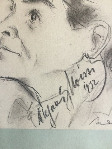 Ebbe Sadolin (1900-82): Portræt af herre 1932. Kul på papir monteret på papir. Sign.: Sadolin Betegnet - Alf..... (kan nogen hjælpe?). Uden ramme 18x18 34121