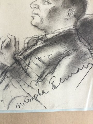 Ebbe Sadolin (1900-82): Portræt af violinisten Mischa Elman (1891-1967). Kul på papir monteret på papir. Sign.: Sadolin Betegnet - Mischa Elman. Uden ramme 22x18 34121