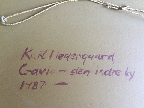 Kurt Nedergaard (født 1945): Gavle - den indre by 1987. Olie på lærred monteret på plade. Sign.: KN Bagpå - KN samt Kurt Nedergaard Bategnet bagpå - Gavle - Den indre by 1987. 21x25 (23x27)