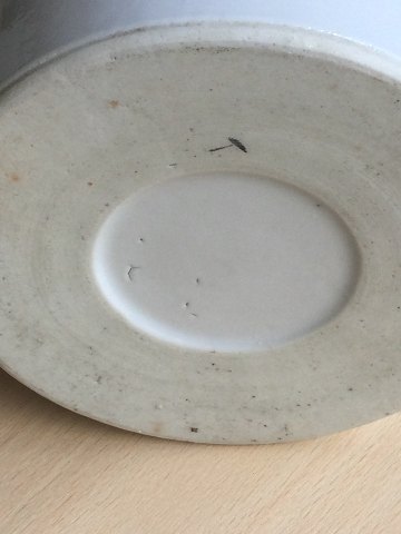 Polykromt dekoreret med skrifts tegn og scene med personer.