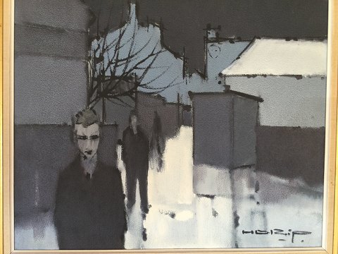 Knud Horup (1926-73): Landskab med gående personer. Olie på lærred. Sign.: Horup 60x70 (78x88) 29022