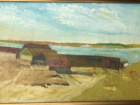 Ubekendt kunstner (20 årh): Gård i høstlandskab. Olie på lærred. Usigneret 25x37 (35x47) 33122