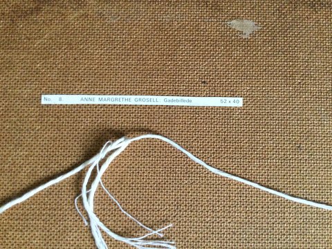 Anne Margrethe Grosell (1909-99): Gadebillede, Vinter 1972. Olie på plade. Sign.: amgrosell Bagpå - Udstillingsmærkat "Anne Margrethe Grosell 9/2 1972" 48x37 (64x52)