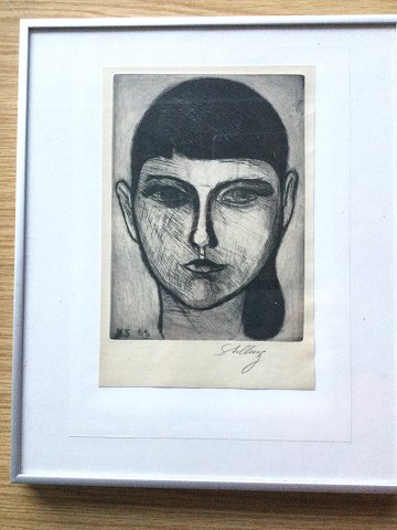 Herman Stilling (1925-96): Portræt af ung kvinde 1955 Radering på papir. Sign.: HS 55 (i trykket) samt Stilling (bly). 24x16 (36x30)