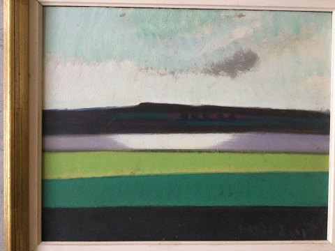 Knud Horup (1926-73): Kubistisk marklandskab. Olie på plade. Sign.: Horup 33x41 (43x51)