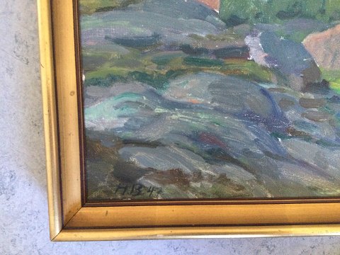 Hermod Bidstrup (1885-1973): Kystparti 1947. Olie på lærred Sign.: H.B. 47. 40x52 (45x57) 5123