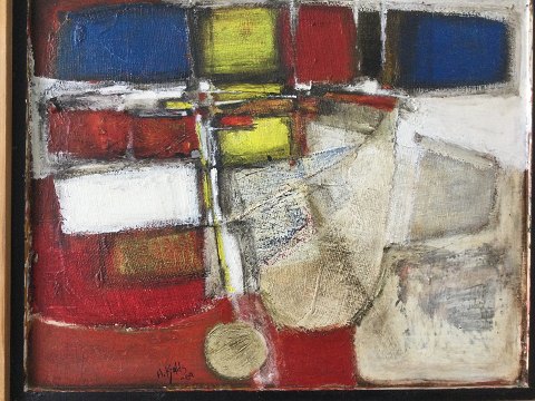 Henrik Kjelds (1941-2024): Abstraktion 1969. Olie på lærred. Sign.: H. Kjelds 69. Indrammet 34x42