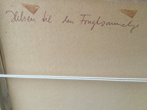 Ubekendt kunstner (20 årh): Mand hilser på gravid kvinde 1965. Akvarel på papir. Sign.: W65 Bagpå titel - "Hilsen til den Frugtsommelige". Indrammet 57x76