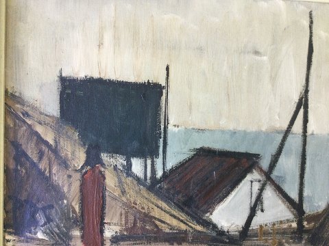 Peder Brøndum Sørensen (1931-2001): "Huse ved havet" 1971. Olie på lærred. Sign.: PBS Bagpå - P. Brøndum Sørensen 1971 samt Huse ved Havet 31x41 (49x59) 15023