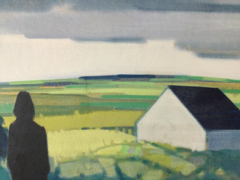 Knud Horup (1926-73): Person i grønt marklandskab. Olie på lærred. Sign.: Horup 60x70 (78x88) 14723