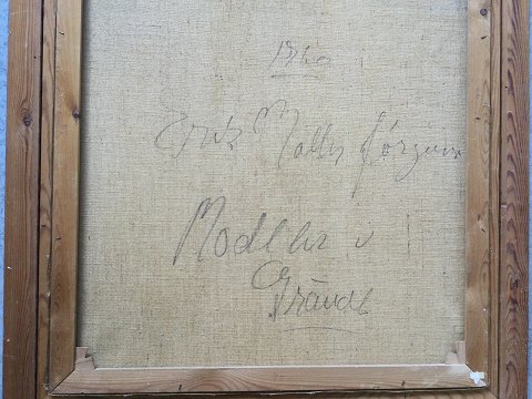Erik Møller Jørgensen (født 1942): Modeller 1960. Olie på lærred. Sign.: EMJ 60. Bagpå betegnet - Erik Møller Jørgensen 1960 - Modeller i ???(utydeligt). 97x78 (114x95) 15423