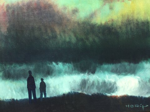 Personer ved oprørt hav.